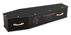 La nouvelle gamme “Expression” offre la possibilité aux proches du défunt, de laisser un témoignage écrit à la craie, directement sur la surface du cercueil.